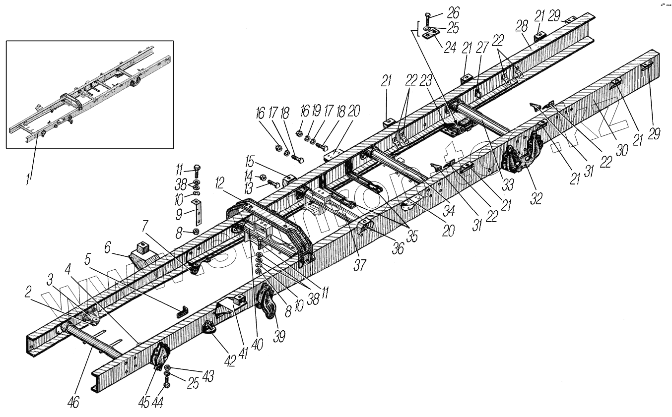 Каталог запасных частей к технике: УралАЗ УРАЛ-4320-61. Рама для автомобиля 5557-0001152-70И03