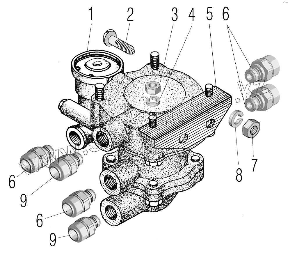 Каталог запасных частей к технике: УралАЗ УРАЛ-4320-61. Установка клапана прицепа
