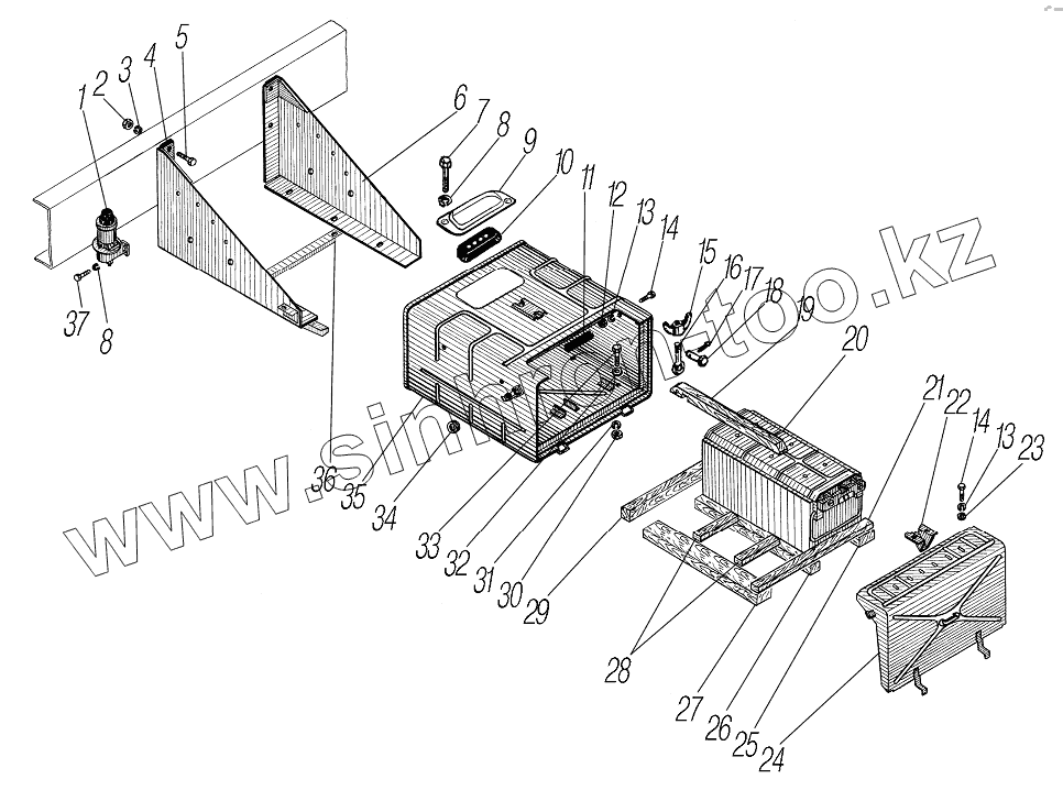 Каталог запасных частей к технике: УралАЗ УРАЛ-4320-61. Установка контейнера аккумуляторных батарей