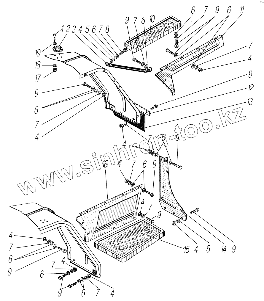Каталог запасных частей к технике: УралАЗ УРАЛ-4320-61. Установка правой и левой подножек