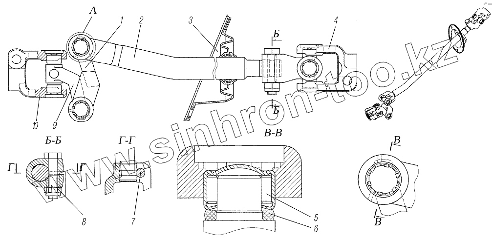 Каталог запасных частей к технике: УралАЗ УРАЛ-4320-6951-74. Карданный вал рулевого управления