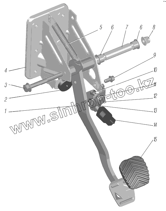 Каталог запасных частей к технике: УралАЗ УРАЛ-4320-6951-74. Кронштейн с педалью тормоза