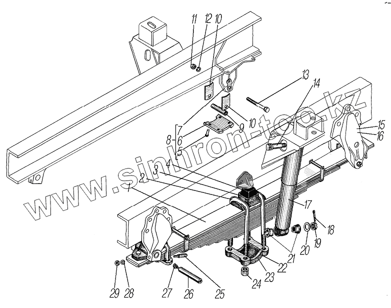 Каталог запасных частей к технике: УралАЗ УРАЛ-4320-6951-74. Передняя подвеска