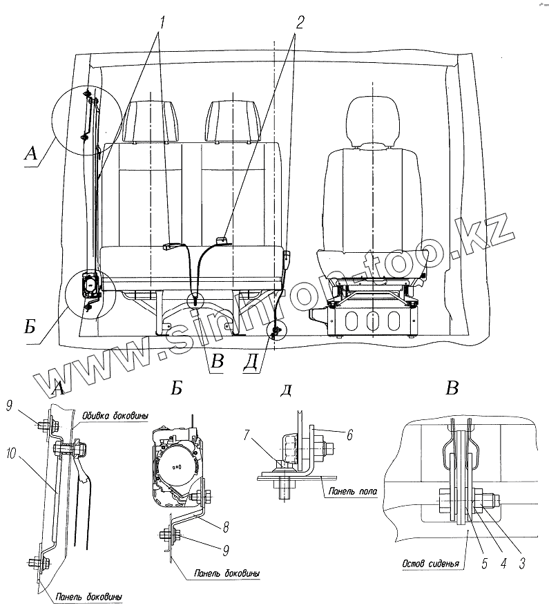 Каталог запасных частей к технике: УралАЗ УРАЛ-4320-6951-74. Ремни безопасности переднего сиденья
