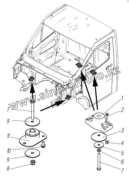 Каталог запасных частей к технике: УралАЗ УРАЛ-4320-6951-74. Установка кабины на раме