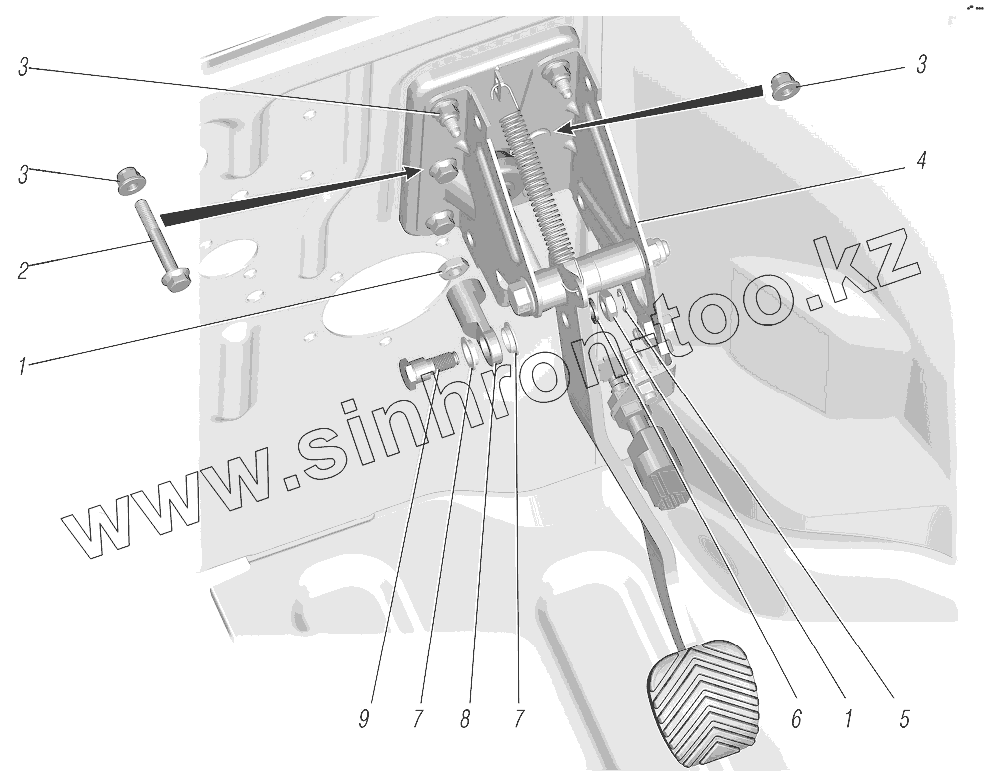 Каталог запасных частей к технике: УралАЗ УРАЛ-4320-6951-74. Установка педали тормоза