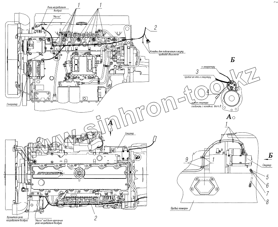 Каталог запасных частей к технике: УралАЗ УРАЛ-4320-6951-74. Установка проводов на двигателе