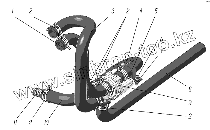 Каталог запасных частей к технике: УралАЗ УРАЛ-4320-6951-74. Установка трубопроводов отопителя