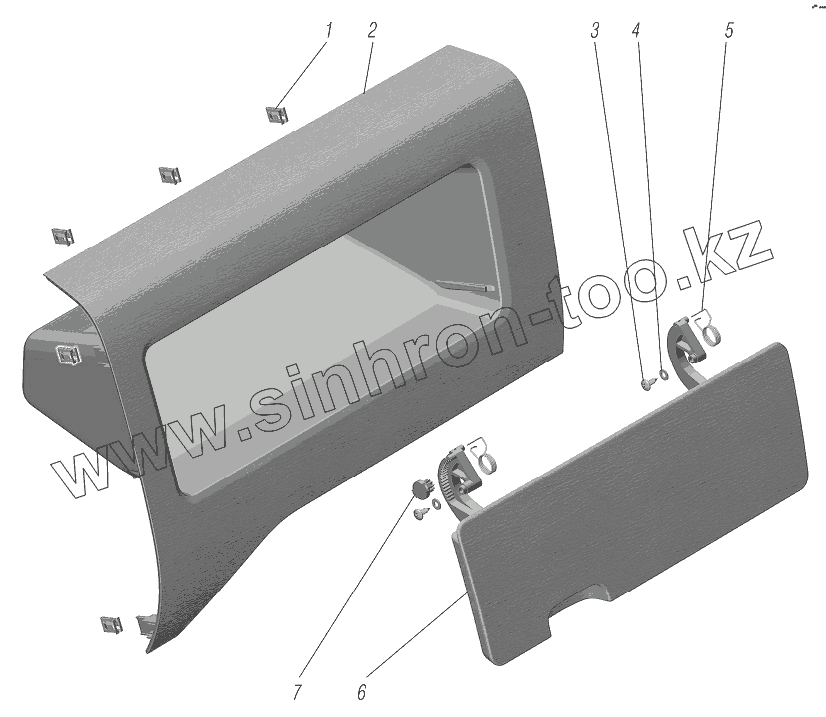 Каталог запасных частей к технике: УралАЗ УРАЛ-4320-6951-74. Ящик вещевой верхний (опция)