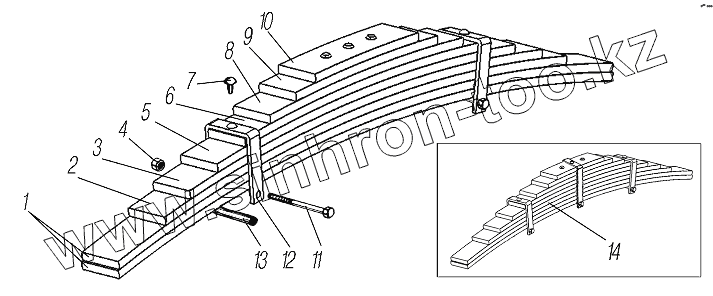 Каталог запасных частей к технике: УралАЗ УРАЛ-4320-6951-74. Задняя рессора