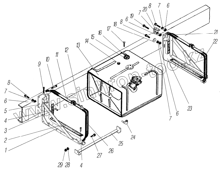 Каталог запасных частей к технике: УралАЗ УРАЛ-4320-80М/82М. Дополнительный топливный бак