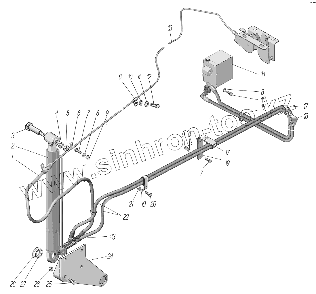 Каталог запасных частей к технике: УралАЗ УРАЛ-4320-80М/82М. Механизм опрокидывания кабины