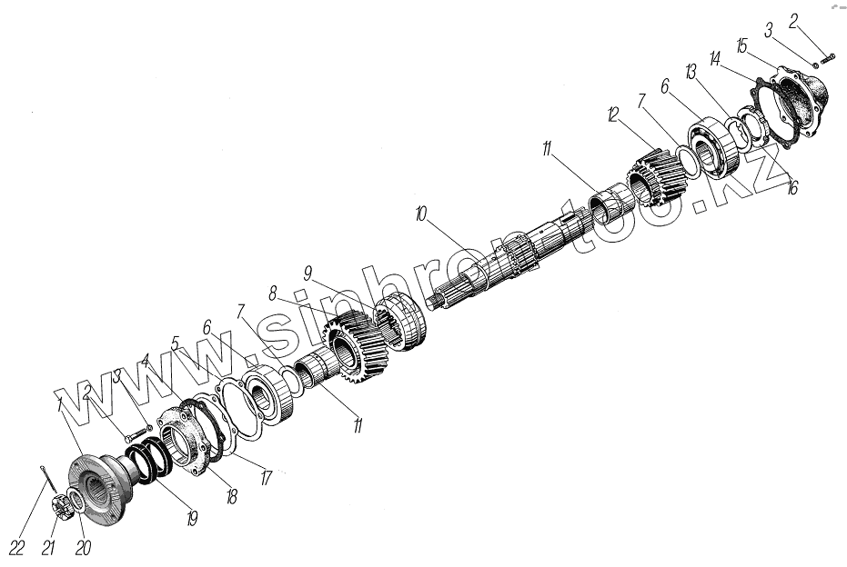 Каталог запасных частей к технике: УралАЗ УРАЛ-4320-80М/82М. Первичный вал раздаточной коробки