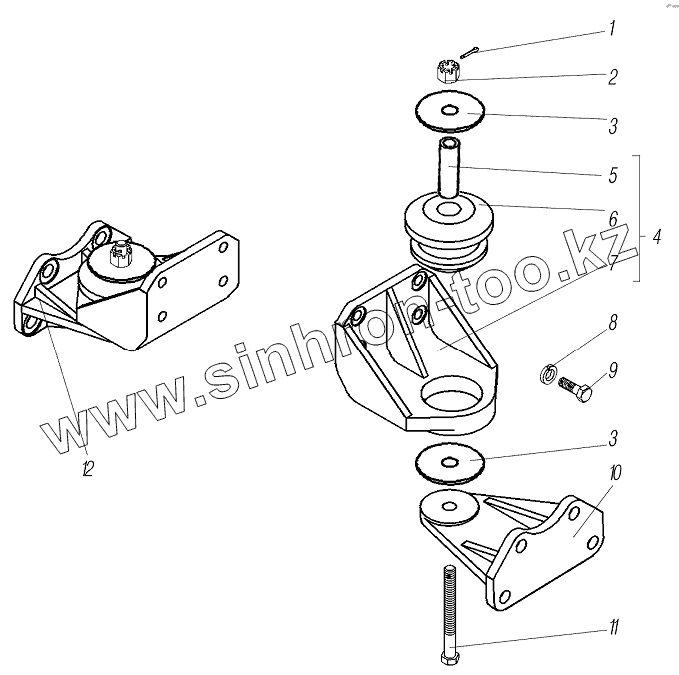 Каталог запасных частей к технике: УралАЗ УРАЛ-4320-80М/82М. Подвеска двигателя передняя
