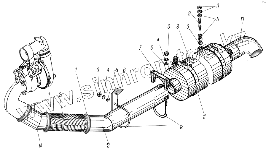 Каталог запасных частей к технике: УралАЗ УРАЛ-4320-80М/82М. Система выпуска газов