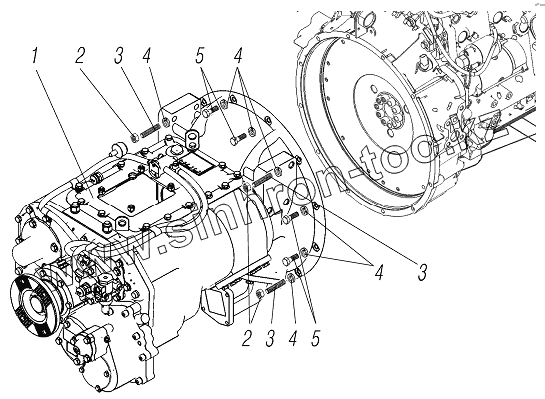 Каталог запасных частей к технике: УралАЗ УРАЛ-4320-80М/82М. Установка коробки передач