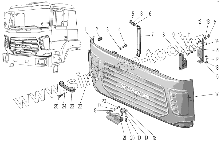 Каталог запасных частей к технике: УралАЗ УРАЛ-4320-80М/82М. Установка наружной облицовки