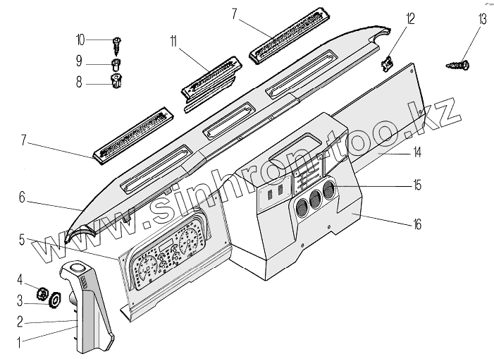 Каталог запасных частей к технике: УралАЗ УРАЛ-4320-80М/82М. Установка панели приборов