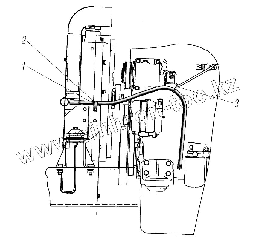 Крепление трубопроводов и шлангов пневматического привода рабочих тормозов