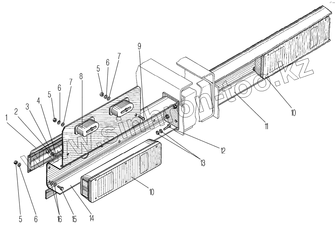 Каталог запасных частей к технике: УралАЗ УРАЛ-4320-80М/82М. Установка задних осветительных приборов