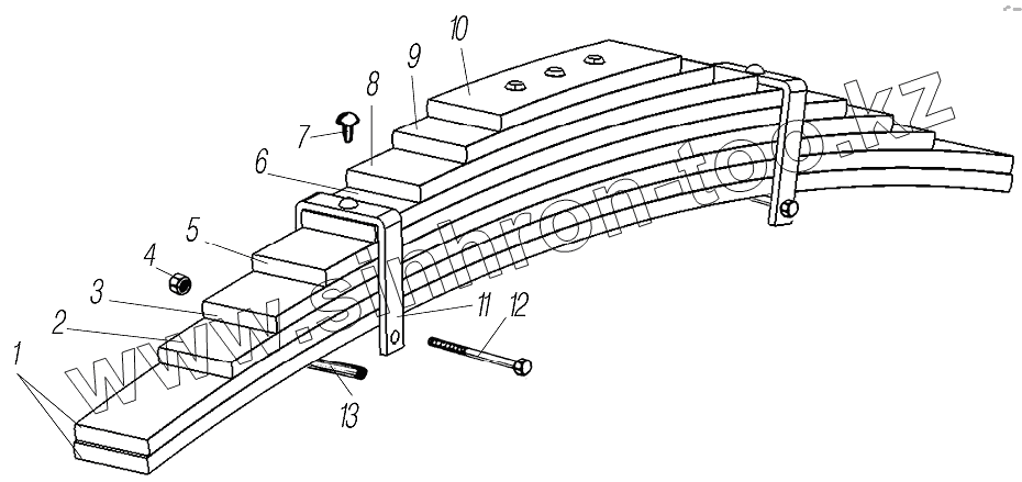 Каталог запасных частей к технике: УралАЗ УРАЛ-4320-80М/82М. Задняя рессора