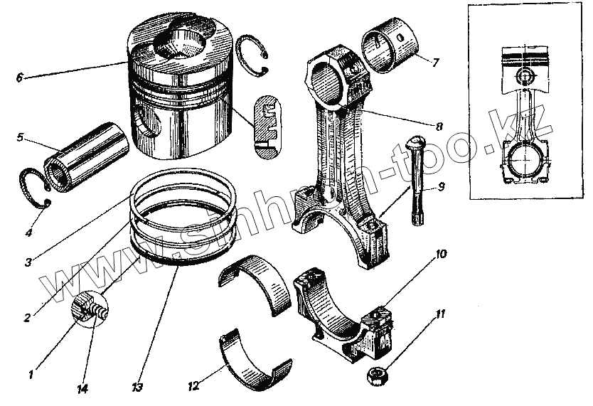 Каталог запасных частей к технике: УралАЗ УРАЛ-4320. Поршень и шатун