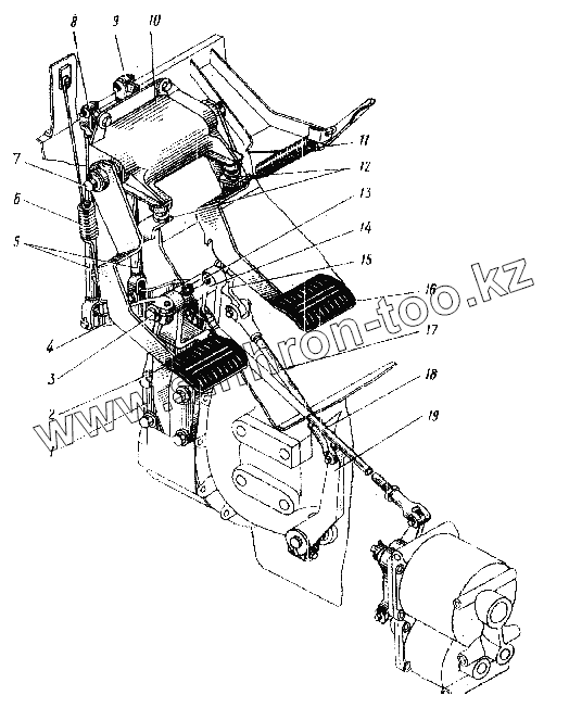 Каталог запасных частей к технике: УралАЗ УРАЛ-4320. Привод педалей сцепления и тормоза