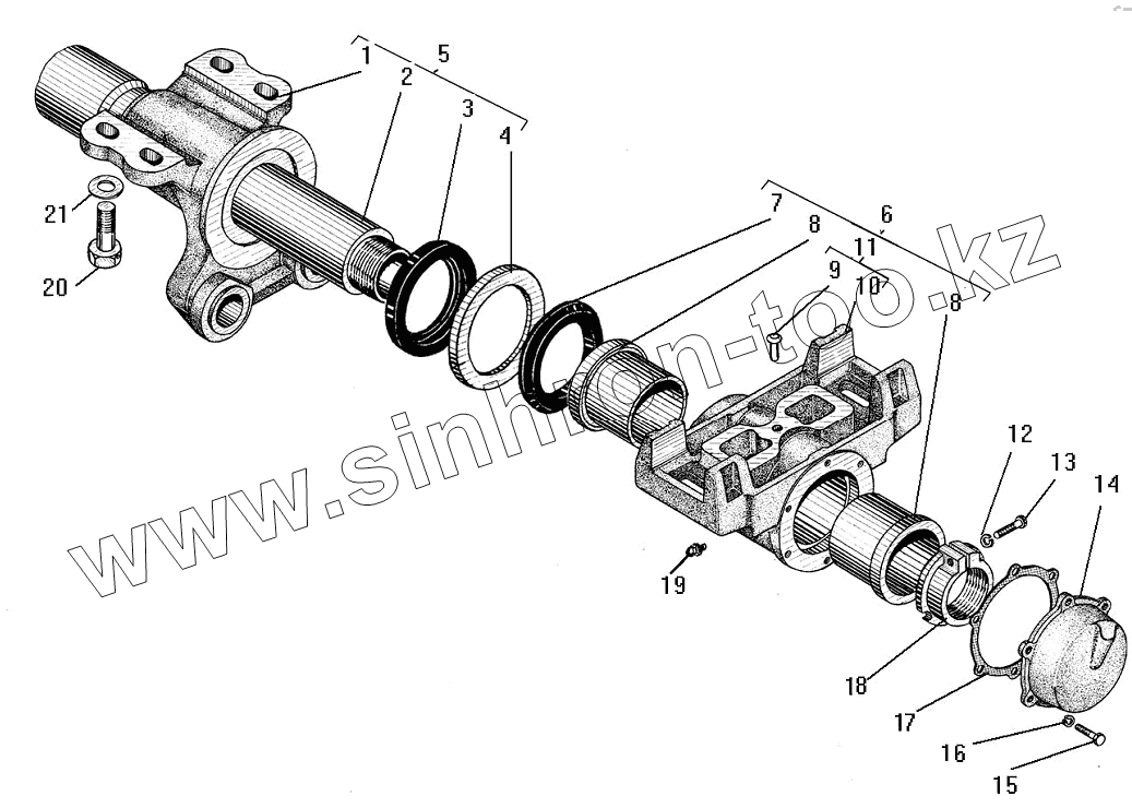 Каталог запасных частей к технике: УралАЗ УРАЛ-44202-0511-58. Ось задней балансирной подвески