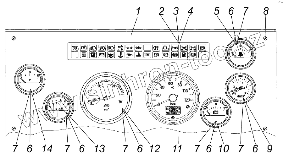 Каталог запасных частей к технике: УралАЗ УРАЛ-44202-0511-58. Панель приборов