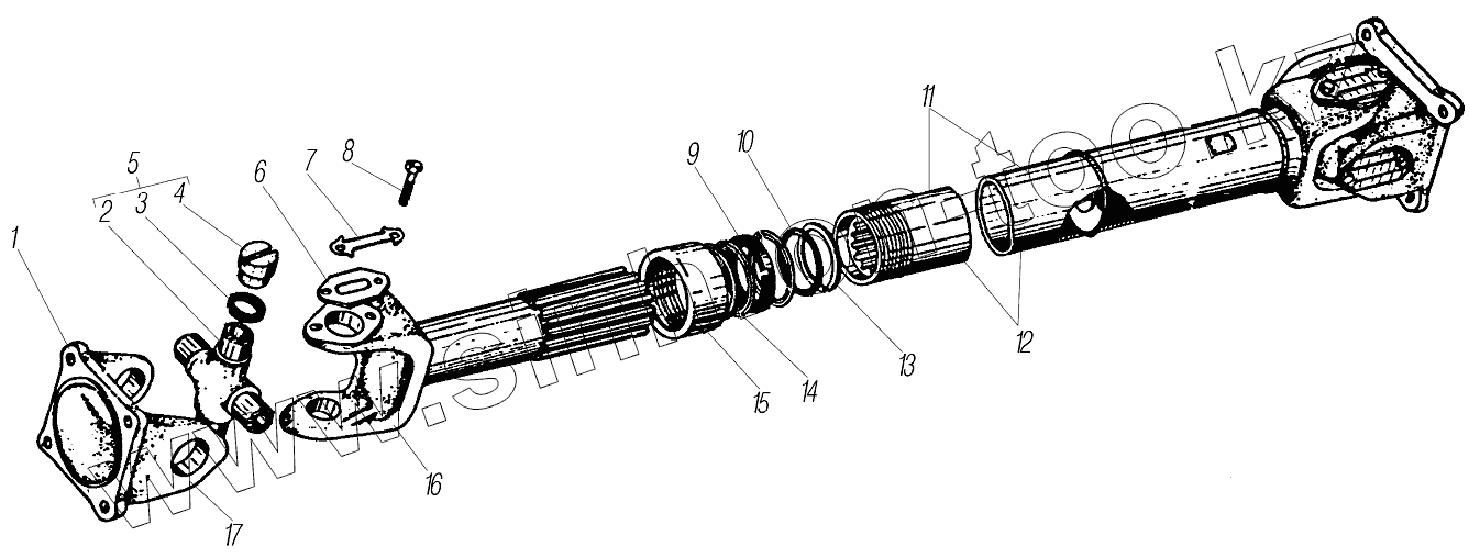 Каталог запасных частей к технике: УралАЗ УРАЛ-44202-0511-58. Вал карданный заднего (переднего) моста
