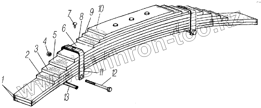 Каталог запасных частей к технике: УралАЗ УРАЛ-44202-0511-58. Задняя рессора 55571Х-2912012