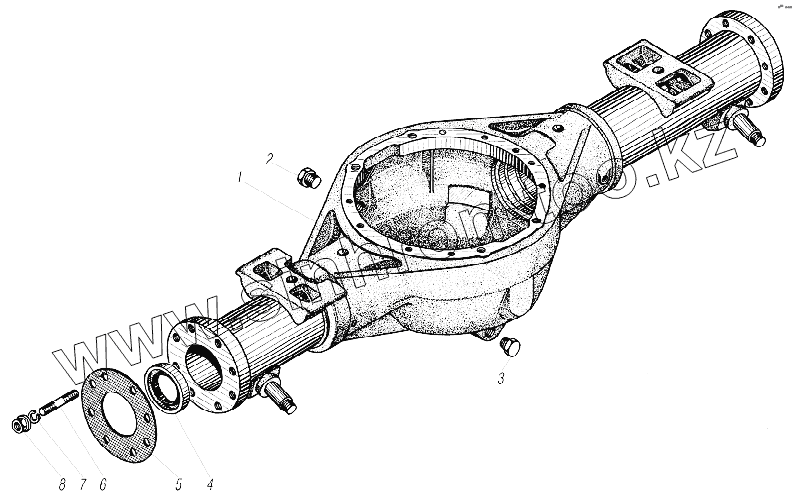 Каталог запасных частей к технике: УралАЗ УРАЛ-44202-3511-80. Картер переднего моста