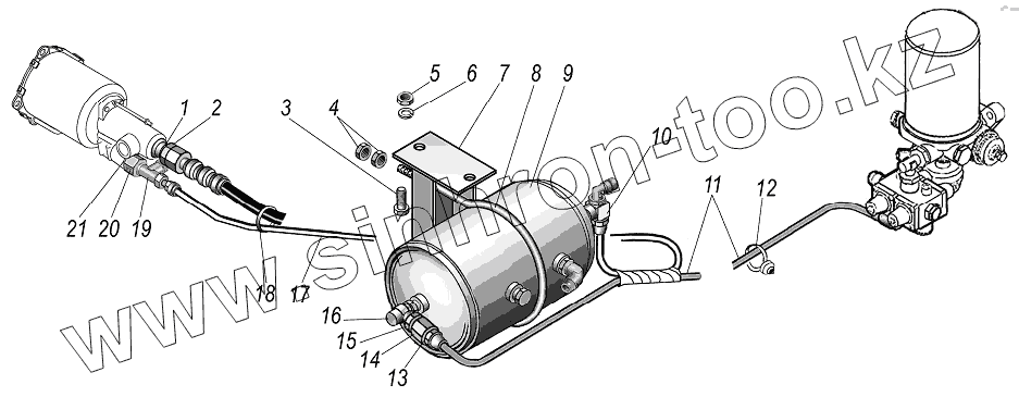 Каталог запасных частей к технике: УралАЗ УРАЛ-44202-3511-80. Установка пневмопривода выключения сцепления