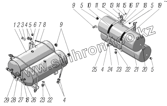 Каталог запасных частей к технике: УралАЗ УРАЛ-44202-3511-80. Установка воздушных баллонов