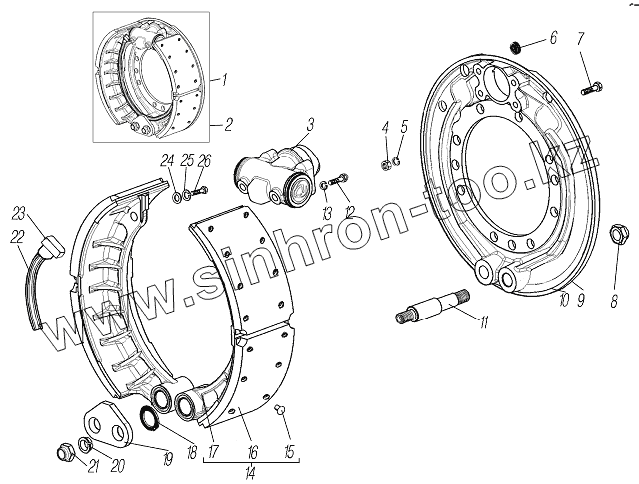 Каталог запасных частей к технике: УралАЗ УРАЛ-44202-3511-80. Рабочий тормоз среднего моста