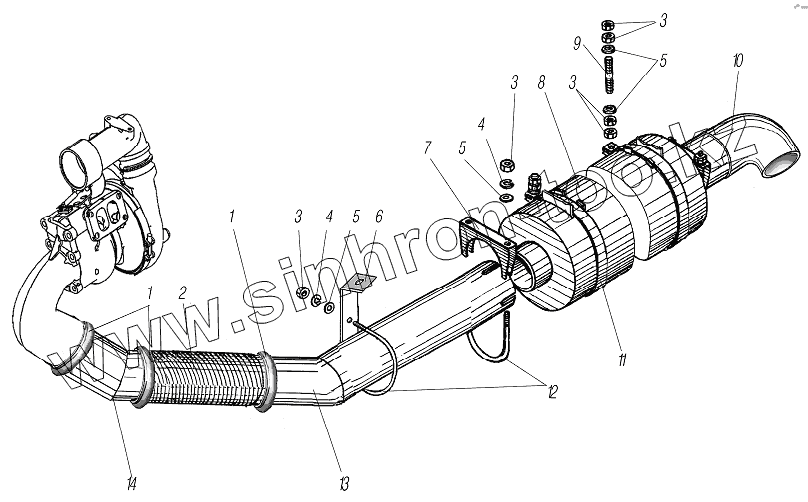 Каталог запасных частей к технике: УралАЗ УРАЛ-44202-3511-80. Система выпуска газов
