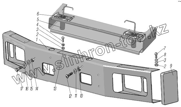 Каталог запасных частей к технике: УралАЗ УРАЛ-44202-3511-80. Установка переднего буфера