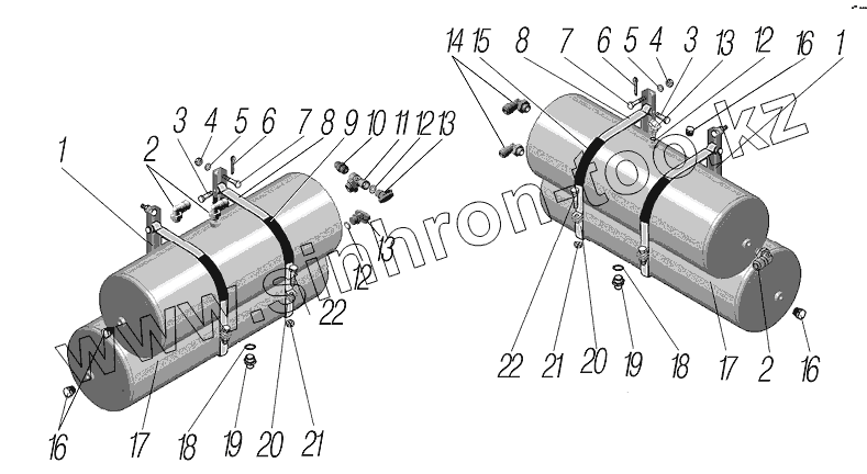 Каталог запасных частей к технике: УралАЗ УРАЛ-44202-3511-80. Установка воздушных баллонов