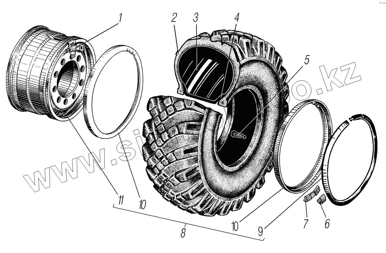 Каталог запасных частей к технике: УралАЗ УРАЛ-44202-3511-80М. Колесо и шина
