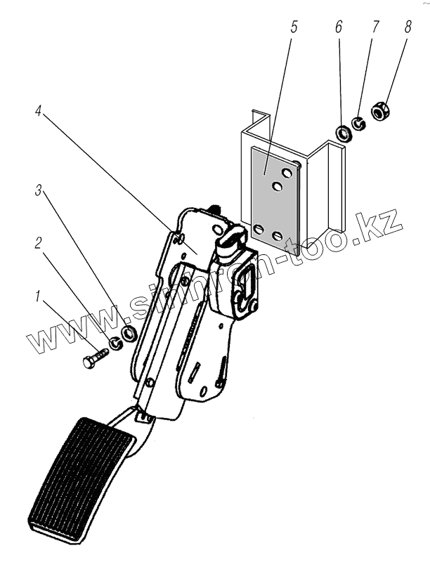 Каталог запасных частей к технике: УралАЗ УРАЛ-44202-3511-80М. Установка педали акселератора