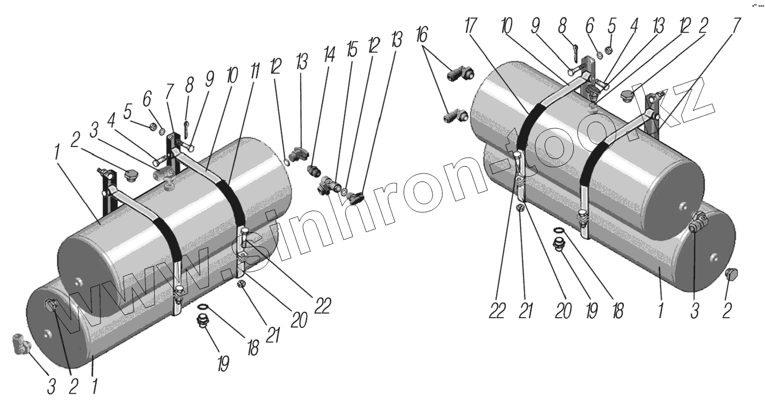 Каталог запасных частей к технике: УралАЗ УРАЛ-44202-3511-80М. Установка воздушных баллонов