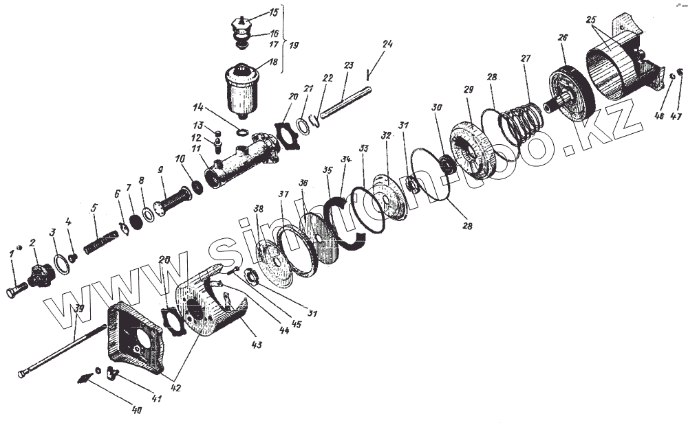 | 25 | 375-3510020-01 | Цилиндр пневмоусилителя задний с крышкой и штуцером в сборе | |