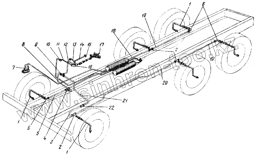 | 20 | 375-4225206 | Трубка от тройника к среднему левому колесу в сборе | |