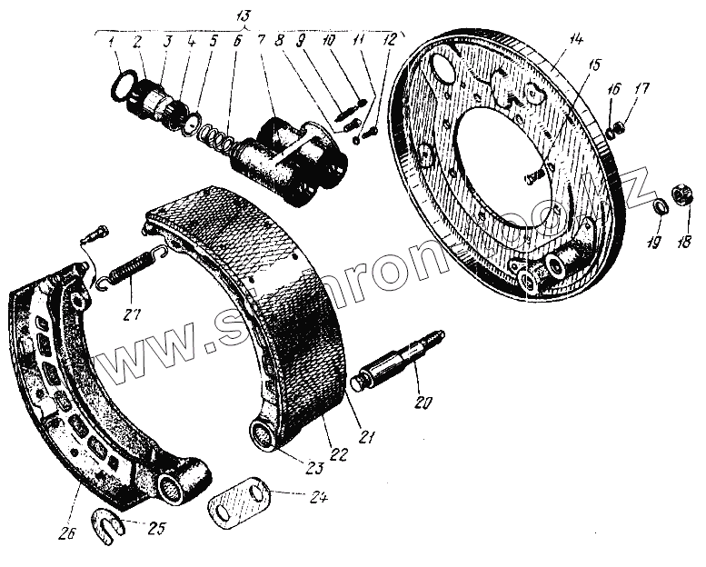 | 14 | 375-3501012-10 | Щит тормоза с кронштейнами в сборе | |