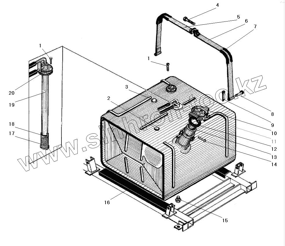 Каталог запасных частей к технике: УралАЗ УРАЛ-532301. Дополнительный топливный бак