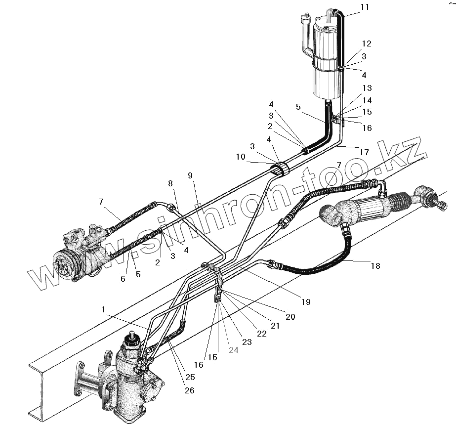Каталог запасных частей к технике: УралАЗ УРАЛ-532301. Гидравлическая система рулевого управления