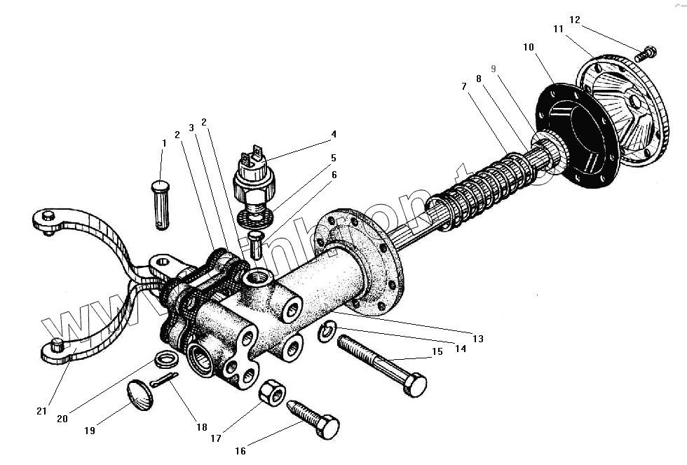 Каталог запасных частей к технике: УралАЗ УРАЛ-532301. Механизм включения блокировки дифференциала