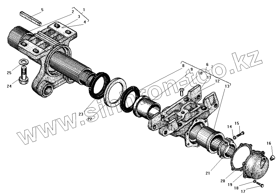 Каталог запасных частей к технике: УралАЗ УРАЛ-532301. Ось передней балансирной подвески