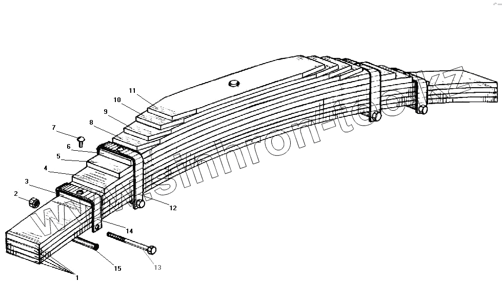 Каталог запасных частей к технике: УралАЗ УРАЛ-532301. Рессора передняя