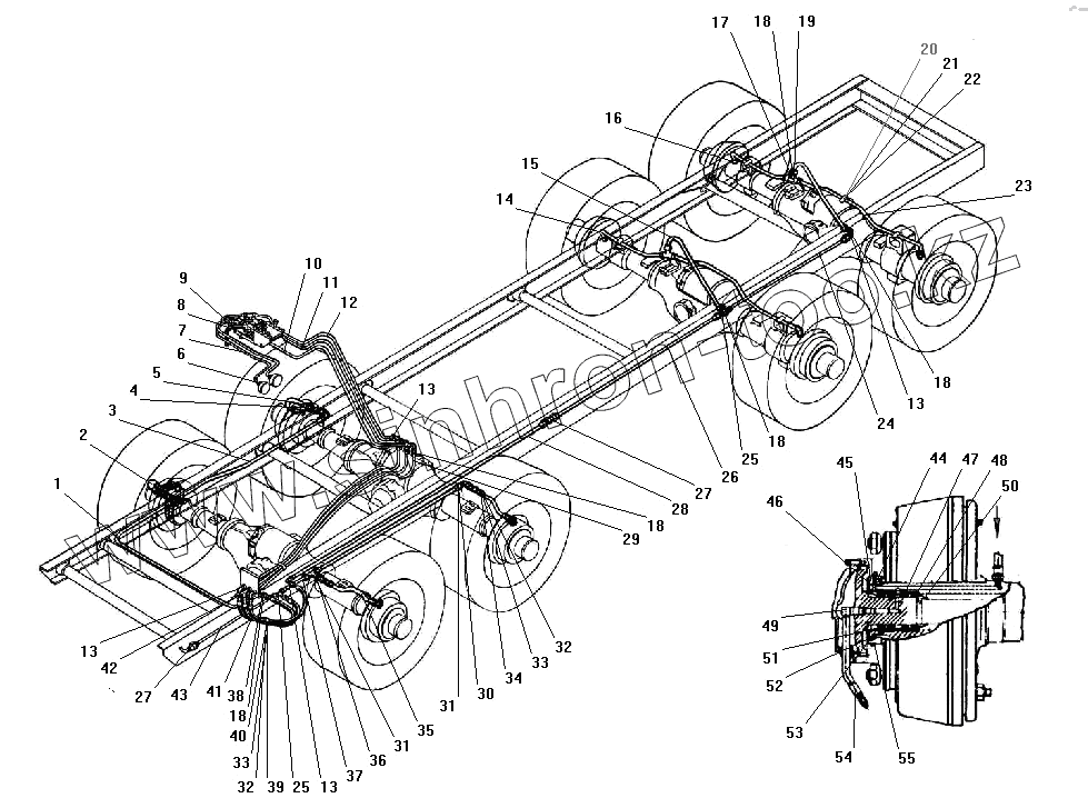 Каталог запасных частей к технике: УралАЗ УРАЛ-532301. Система регулирования давления воздуха в шинах